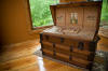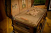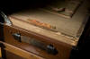 Metal Clad Flattop circa 1900. This is a very sturdy trunk and an unusual double lock design adorns the front. It has an elaborate tray and a nice decal in the lid