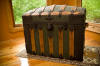 Metal Clad ladies trunk circa 1890. This trunk has a nice tray, elaborate cast fittings, and a gorgeous matte green color.