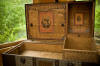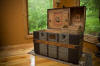 Exceptional embossed metal trunk circa 1890. The patterned metal has not been painted, it has a color similar to pewter. Very few trunks exist with this degree of originality, quality and size. The art in the interior is quintissentially Victorian in it's motif and detail but is unusial because of it's subtle, salmon color. This trunk was very well maintained and is structurally very sound. The pattern in the metal is unisex; most embossed designes are feminine and have a floral pattern
